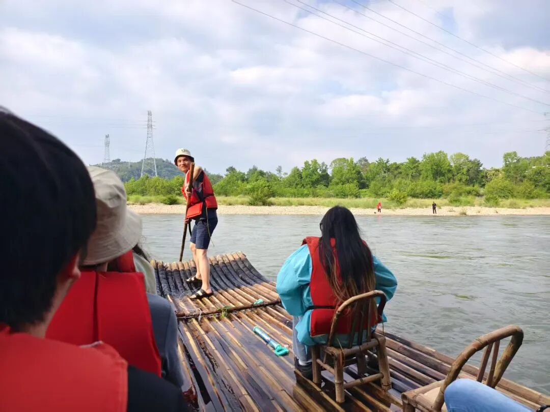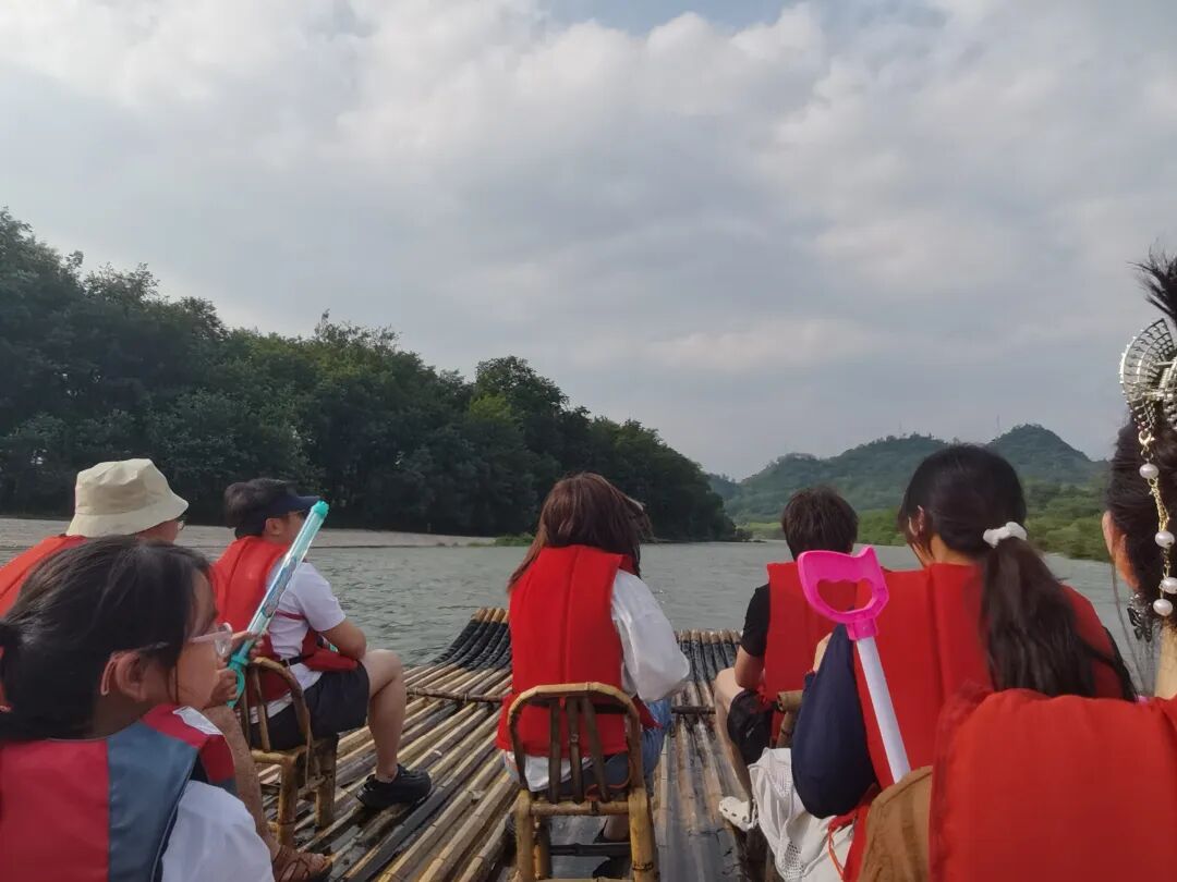 古村的寧靜還未褪去,永安溪的碧波已向我們招手。竹筏剛離岸,"戰(zhàn)斗"就猝不及防地爆發(fā)。小伙伴們迅速分成“水軍戰(zhàn)隊”。水槍齊發(fā)、水花四濺,互不相讓。清澈的溪水映照著藍天白云,竹筏在歡鬧中順流而下。