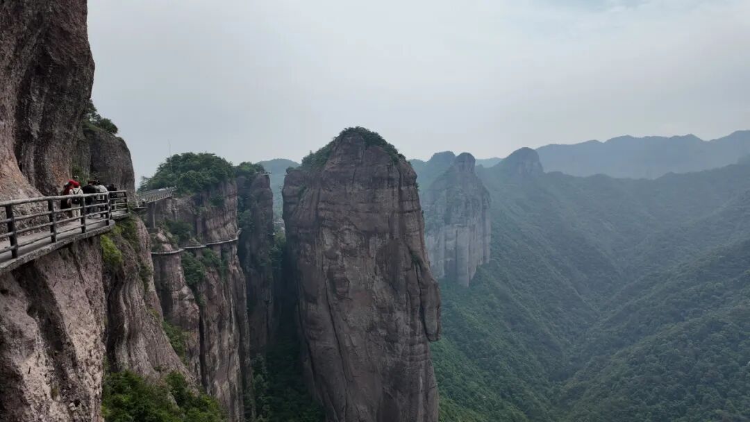 5月25日清晨,磅礴山影撞入車窗。晨霧纏繞括蒼山脈的千仞絕壁,我們的大巴如游龍般沿山盤桓而上。神仙居,正以李白詩中的天姥氣韻,迎接這支名為“盛蝶尋仙團”的隊伍。