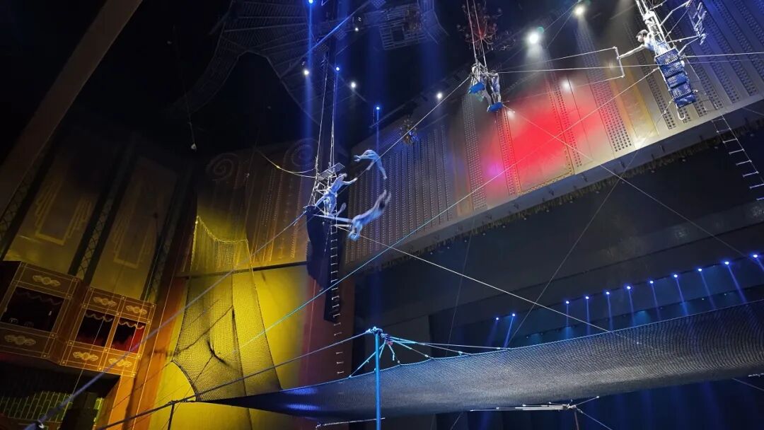 夜幕降臨,百老匯風(fēng)格的舞臺緩緩拉開猩紅帷幕,空中飛人騰躍翻轉(zhuǎn),臺下掌聲雷動。