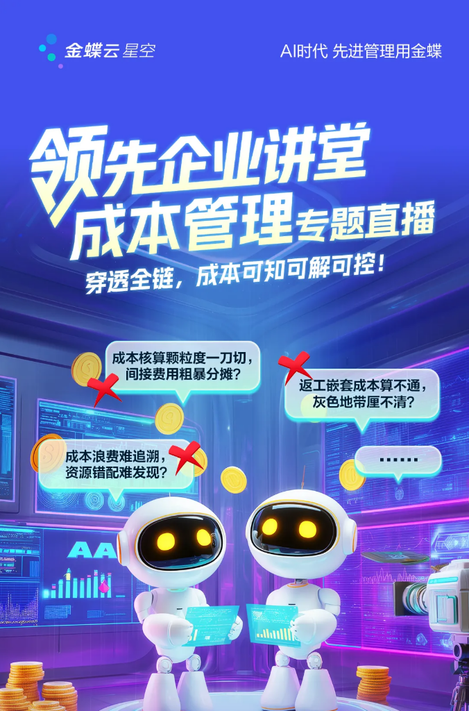 9月11日,金蝶云·星空《企業(yè)講堂-成本管理專題》直播圓滿結(jié)束。本次直播深度解析了目標成本法(Target Costing) 及其落地方法論,為企業(yè)提供了一套從戰(zhàn)略定價到成本分解、從流程管控到系統(tǒng)支撐的完整解決方案。